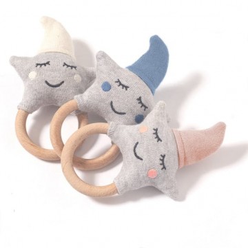 Si apaisant cet anneau de dentition bois et son étoile endormie en coton.