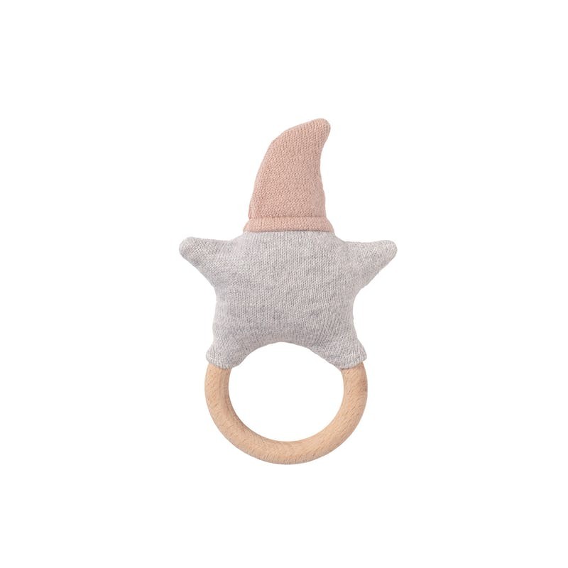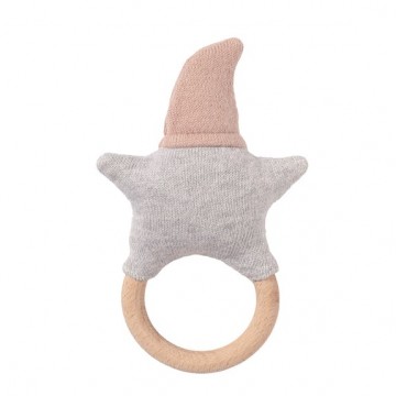 Anneau de dentition bois et coton avec hochet Etoile rose - Nordic Coast Company