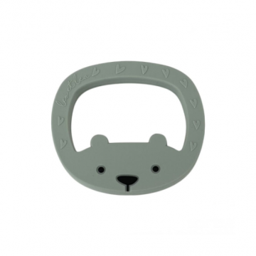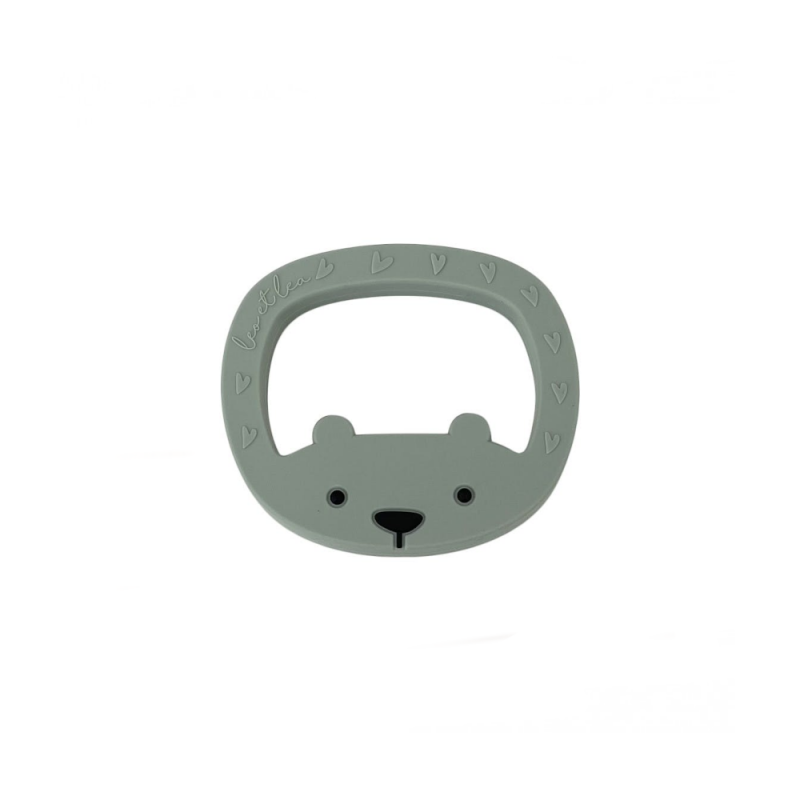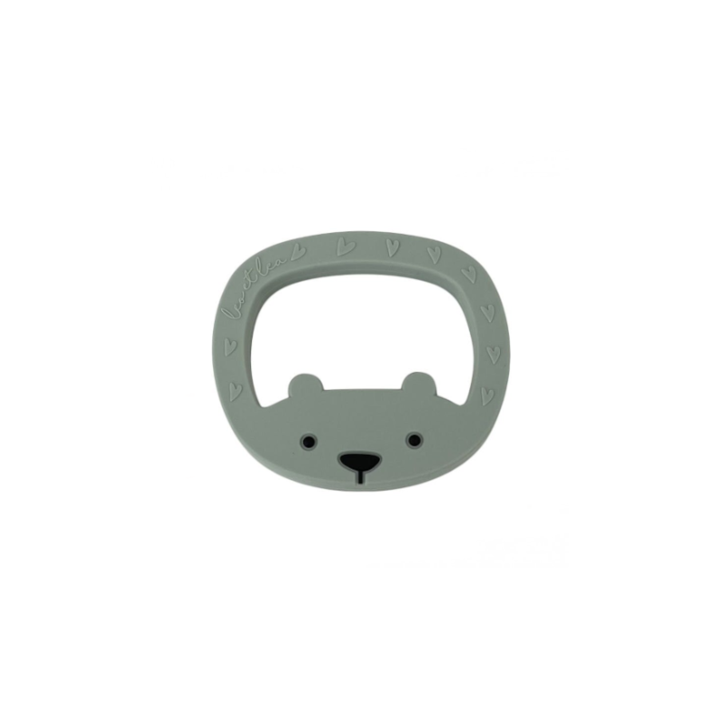 Un anneau de dentition en silicone alimentaire avec sa jolie petite frimousse d'ours couleur vert céladon.