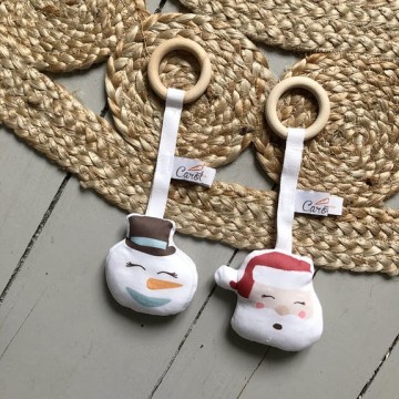 Ce gentil papa noël garde son anneau de dentition bien précieusement pour aider bébé lors de ses poussées dentaires.