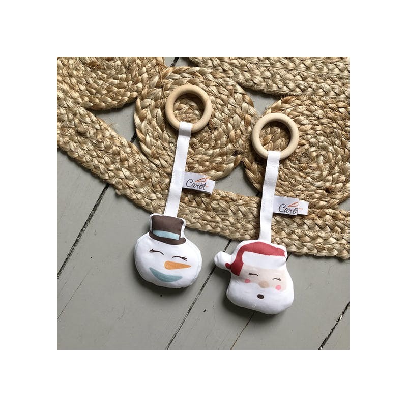Anneau de dentition bois et coton "Père noël" - Carotte&cie