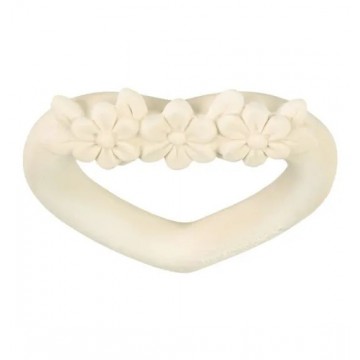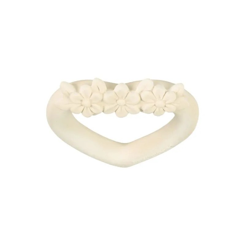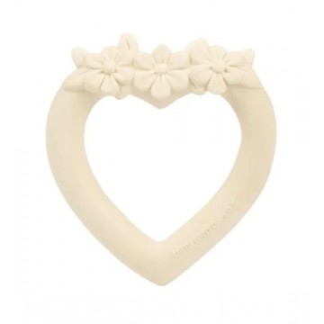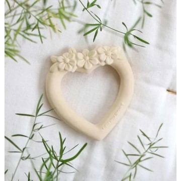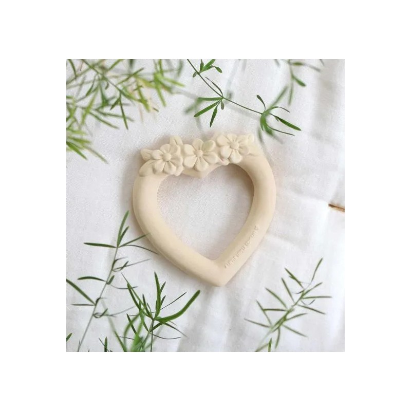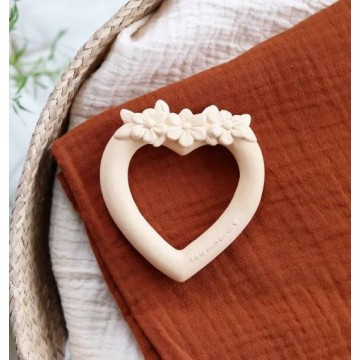Un petit anneau de dentition écru coeur à mâchouiller pour soulager les gencives douloureuses quand bébé fait ses premières dents.